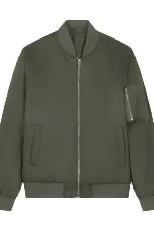 Het ontwerp is voorzien van kenmerkende details die het bombermodel karakter geven. De zilverkleurige metalen rits aan de voorkant is stevig en opvallend, terwijl de 1×1 ribboorden bij kraag, manchetten en onderzoom zorgen voor een nette afwerking. Op de mouw bevindt zich een zak met rits en meerdere pennenvakken, een detail dat zowel functioneel als stijlvol is. Daarnaast heeft de Bomber 2.0 twee voorzakken met drukknoopsluiting en een binnenzak voor extra opbergruimte. De doorgestikte binnenkant zorgt voor stabiliteit en een verzorgde afwerking.