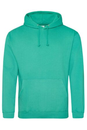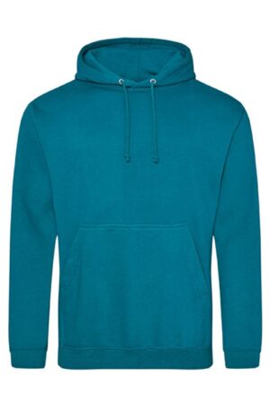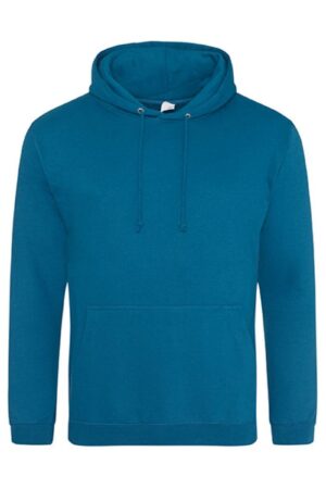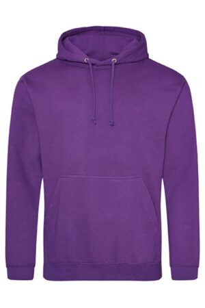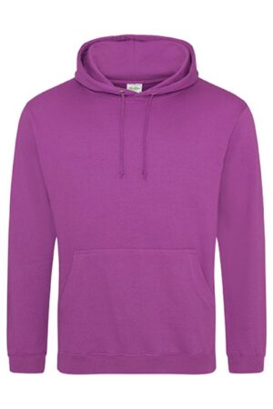 De Just Hoods College Hoodie AWDIS is een klassieke unisex hoodie met capuchon van 80% katoen en 20% polyester, met geborsteld fleece binnenzijde, kangoeroezak en comfortabele regular fit, ideaal als casual draagshirt of team-sweater. Deze hoodie biedt een perfecte basis om te bedrukken of borduren met logo’s of teksten voor club-, school- of bedrijfskleding.
