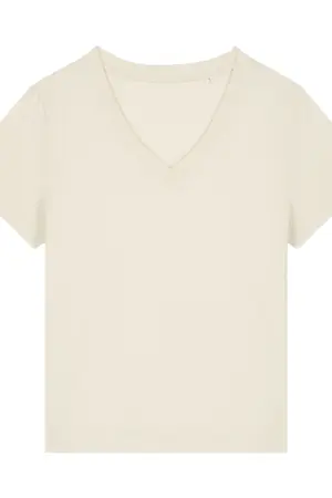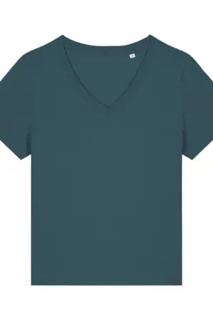 De Stella Isla is een vrouwelijk T-shirt met V-hals dat eenvoud en verfijning combineert. Hij is gemaakt van 100 % biologisch katoen en weegt 155 g/m² — licht, ademend en comfortabel voor dagelijks gebruik. De pasvorm is medium-fit, ontworpen om flatterend te vallen zonder strak aan te zitten.